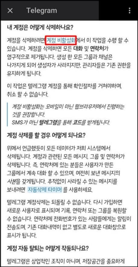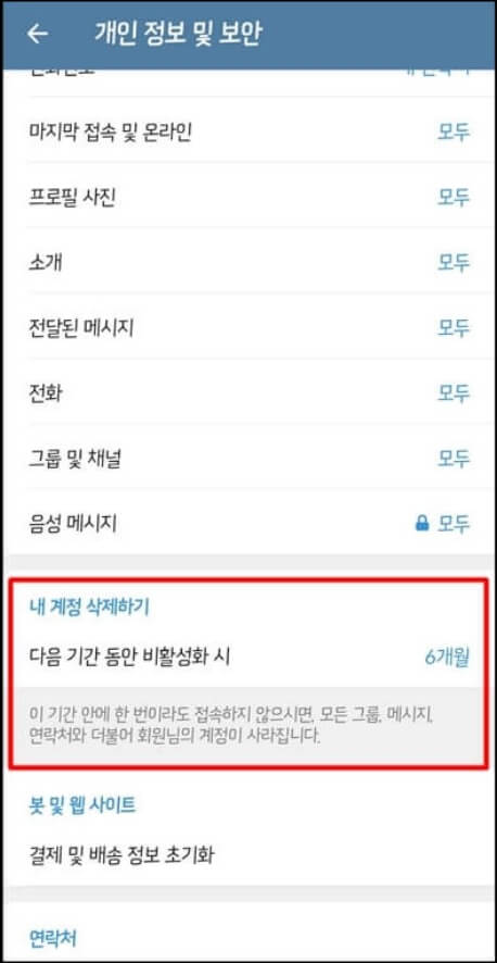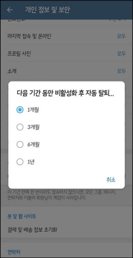 텔레그램 계정삭제 유예