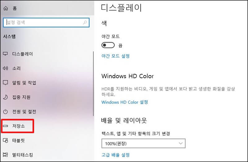 매일 컴퓨터를 사용하다보면 나도 모르게 컴퓨터 속에 저장되는 임시파일들이 쌓이게 됩니다. 이 임시파일을 삭제해 주는 것만으로도 컴퓨터 c드라이브 정리가 어느 정도 가능한데요~ 컴퓨터를 실행한 후 윈도(시작) 키를 누르고 설정 > 시스템 > 저장소 순으로 접속합니다.