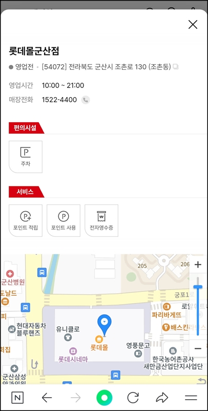 내가 방문할 수 있는 매장을 클릭하면 매장 주소와 주차정보 그리고 지도를 확인할 수 있습니다.