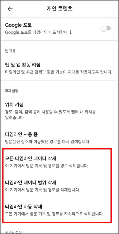 구글 타임라인 삭제 방법