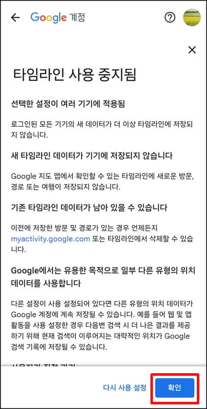 구글 타임라인 비활성화