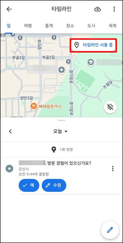 구글 타임라인 확인 방법