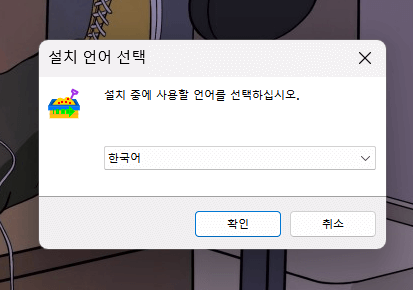 4. 설치 중에 사용할 언어를 한국어로 선택하고 확인을 누른 뒤