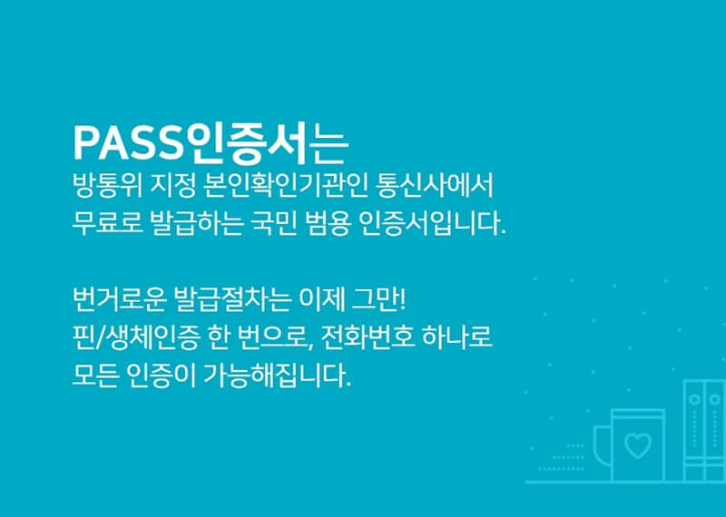 pass앱은 공인인증서 제도가 폐지되는 시점에 통신 3사에서 공동 개발한 인증서비스로 공공기관의 각종 본인확인 인증뿐만 아니라 온라인 서류발급 신청 및 금융거래, 계약서 전자서명에 이용할 수 있습니다. 그럼 지금부터 공동인증서보다 편리한 pass앱 설치 방법과 pass앱 인증서 발급 방법에 대해 알려드리겠습니다.