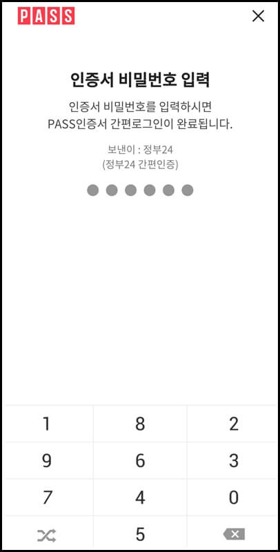 이후 pass앱 인증서에서 사용할 비밀번호 6자리를 두 번 입력하면 pass앱 인증서 발급이 완료됩니다.