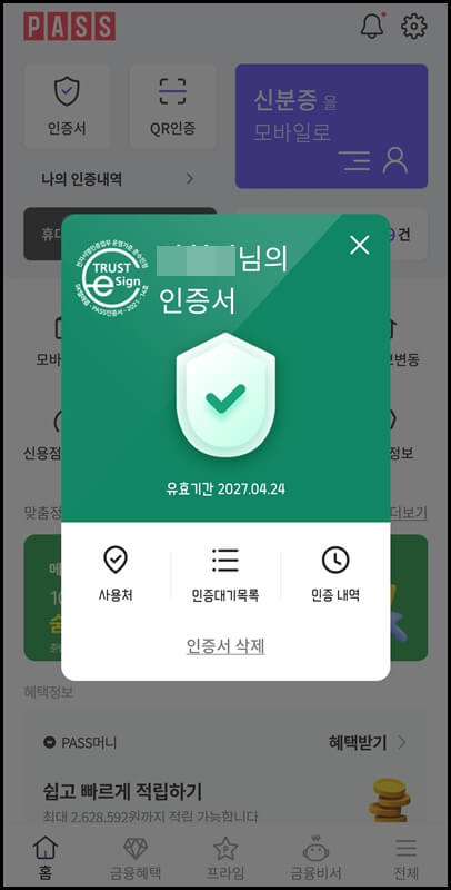 pass앱 인증서 발급방법