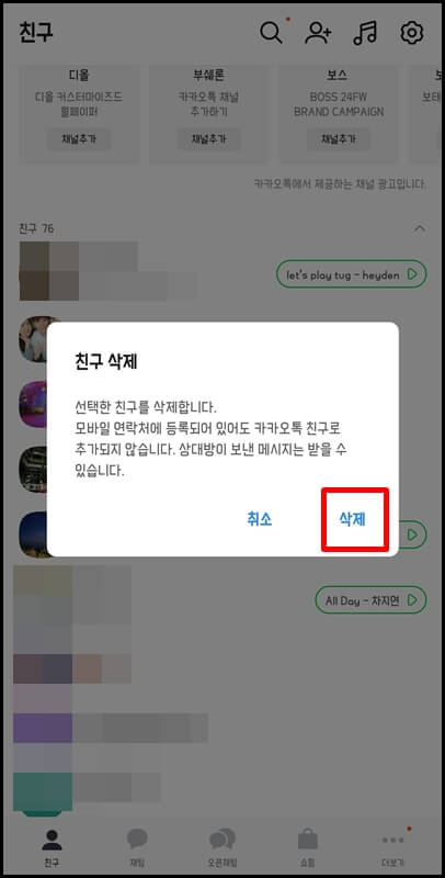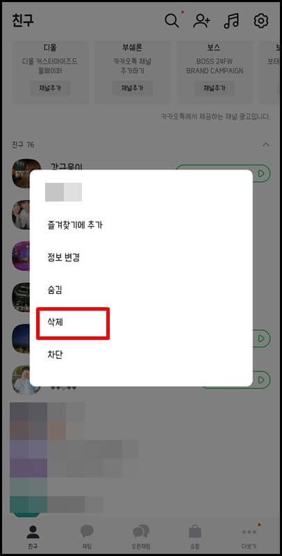 카카오톡 친구 삭제 방법