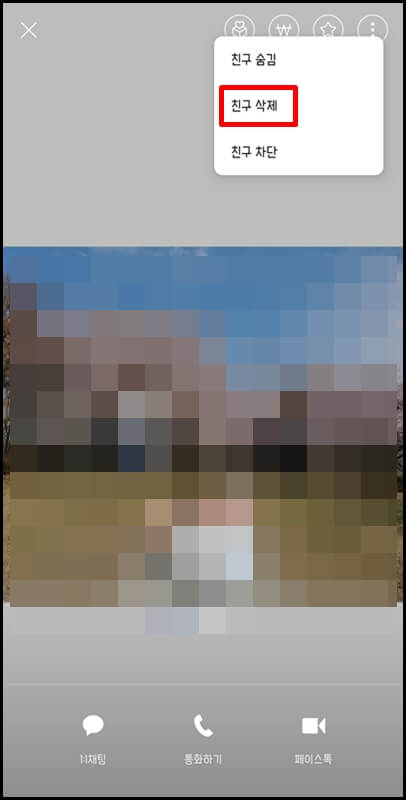 그리고 친구 프로필을 클릭(선택)하고 상단에 있는 점 세 개를 눌러도 삭제 및 차단이 가능합니다.