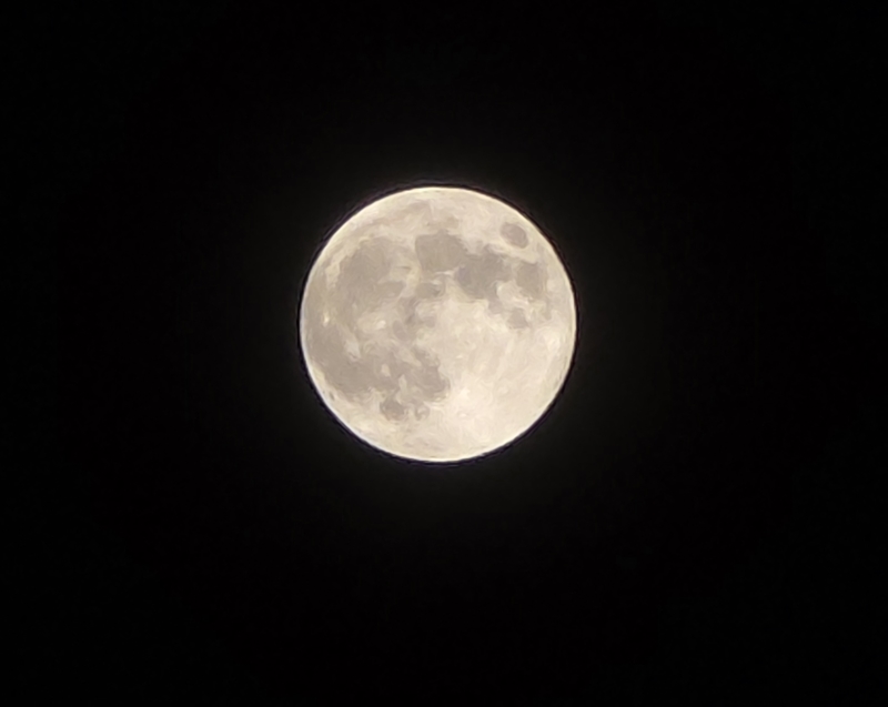 위의 사진들은 작년 8월에 슈퍼문이 떴던 날 찍었던 사진으로 갤럭시 s20 플러스 기본 카메라 모드로 촬영한 사진인데요~ 현재 사용하고 있는 갤럭시 s24 울트라도 마찬가지지만 기본 카메라로 확대를 하지 않고 달 사진을 찍으면 위의 이미지처럼 사진이 찍힙니다.