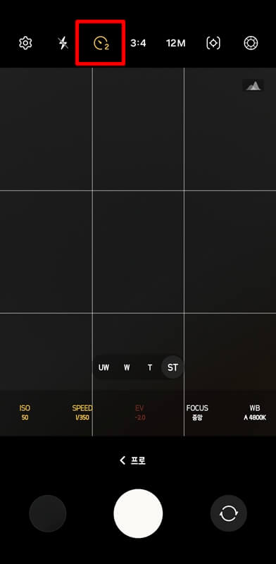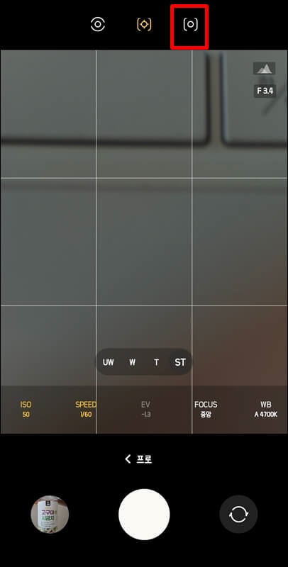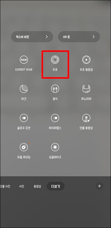 두번째는 카메라 프로모드를 활용하여 갤럭시 s24 울트라 달사진 찍는 법입니다. 갤럭시 카메라를 실행하고 더 보기 > 프로모드로 들어가서 카메라 렌즈를 슈퍼망원렌즈(ST)로 바꿔준 뒤 줌을 조금 더 당겨줍니다.