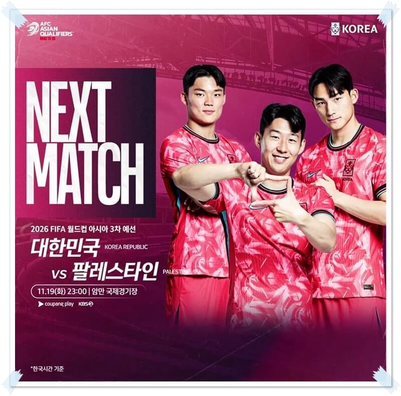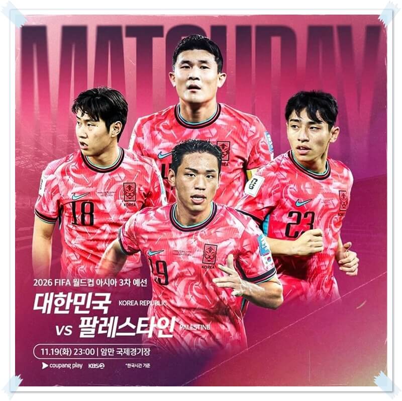 25년 3월 20일(목), 3월 25일(화) 북중미 월드컵 아시아 3차예선 축구 중계방송은 위의 포스팅에서 확인 바랍니다.