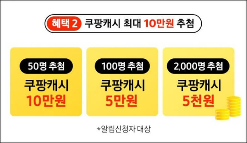 그리고 만약, 쿠팡 갤럭시 s25 사전예약이 시작되기전 사전구매 알림 신청을 했다면 2만원의 쿠팡캐시를 지급받을 수 있고, 추첨을 통해 최대 쿠팡캐시 최대 10만원을 증정하는 혜택도 받을 수 있습니다.