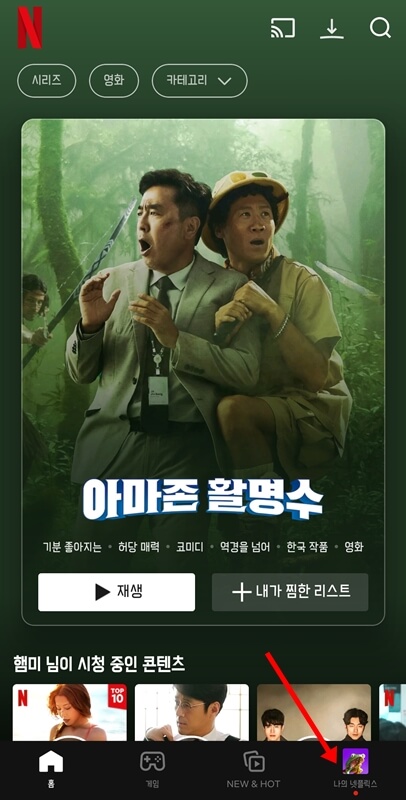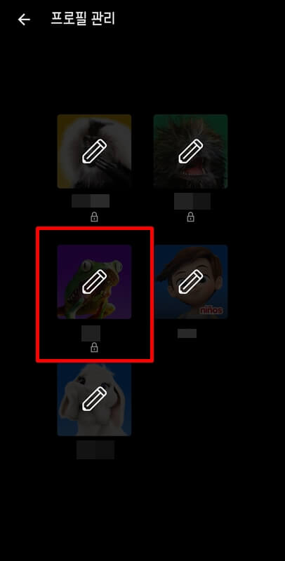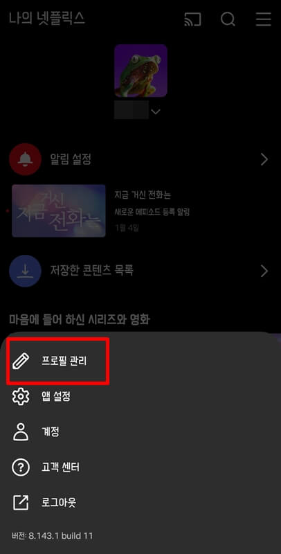 핸드폰을 이용하여 넷플릭스 자막 크기 및 색깔 변경을 하려면 넷플릭스에 접속 후 오른쪽 하단에 있는 본인 프로필을 클릭한 뒤 프로필 관리로 들어갑니다.