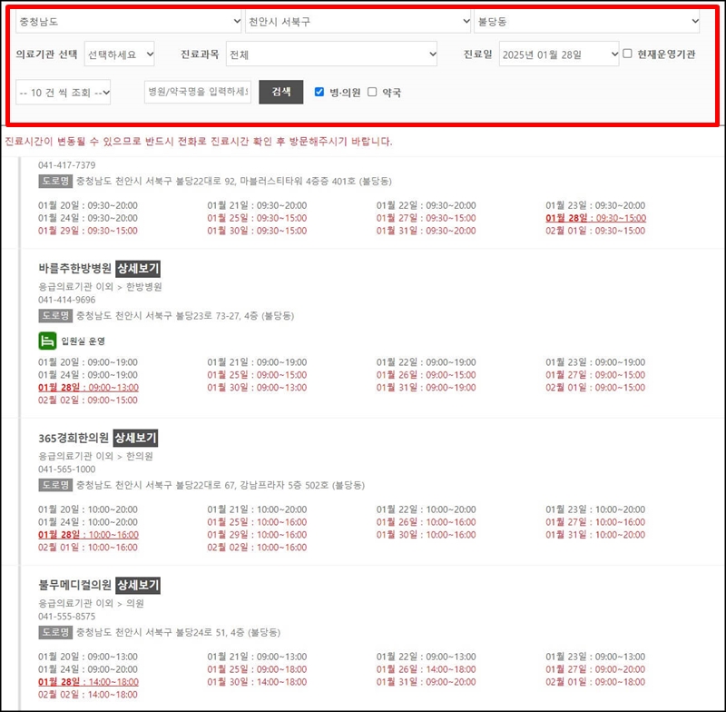 지금까지 오늘 문여는 병원과 오늘 문여는 약국 찾는 방법을 알려드렸습니다. 중증이 아닌 경우에는 오늘 문여는 동네 병원에 방문해 진료를 받는 것이 좋고, 병원 진찰 결과에 따라 중증질환이 의심된다고 판단하면 큰 병원으로 옮길 수 있으니 참고하시기 바랍니다.