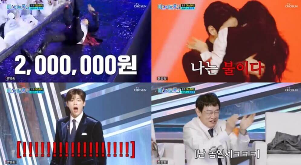 또한 트롯 새싹으로 무대에 오른 배우 박광현이 12년차인 무룡을 꺾고 11대 4로 승리하면서 반전을 선사하기도 했으며 조수미 피아니스트 출신인 크리스영은 성악 처년 강성규를 무려 15대 0으로 꺾으면서 본선 3차에 직행하게 되었습니다. 이어진 무대에서는 김홍남과 성악 엘리트인 김현수와 맞붙었고 그 결과 1표 차이로 김현수가 승리했습니다.