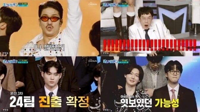 이로써 10팀이 탈락하고 24팀이 본선 3차 진출을 확정했는데요~ 본선 3차에 진출하게 된 최종 진출자는 남승민, 김용빈, 유지우, 손빈아, 추혁진, 이수호, 남궁진, 크리스영, 이지훈, 천록담, 박광현, 고정우, 김현수, 강훈, 펑키로컬스, 원정인, 심수호, 최재명, 춘길, 임찬, 홍성호, 문태준, 강민수, 박지후 등 총 24명으로 결정되었습니다.