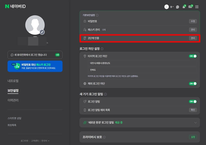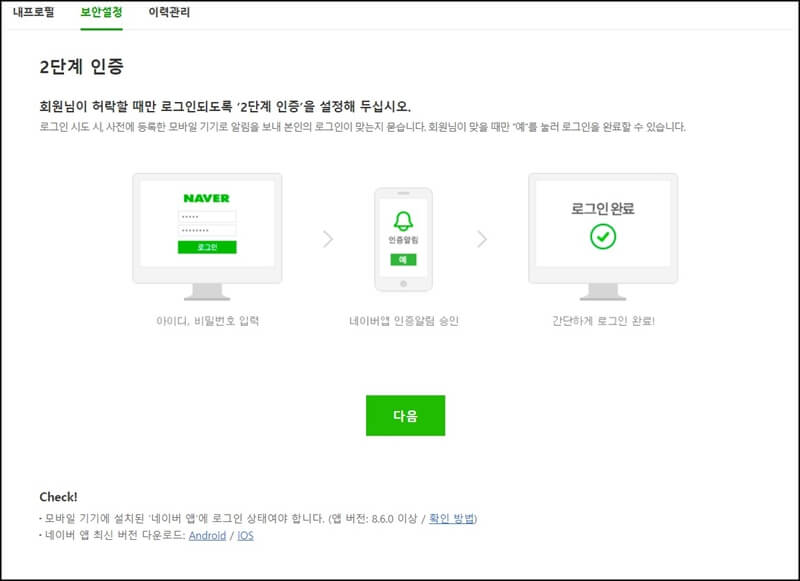네이버 2단계 인증 설정