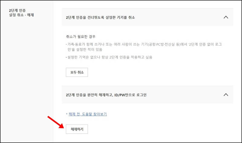 네이버 2단계 인증 해제