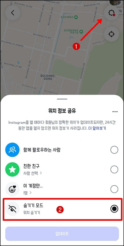 인스타 위치공유 끄기