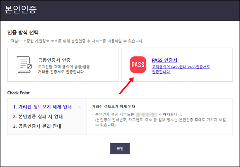 다만 공동인증서 인증 또는 PASS 인증을 통해 또 한 번의 본인인증 절차를 거쳐야 합니다.