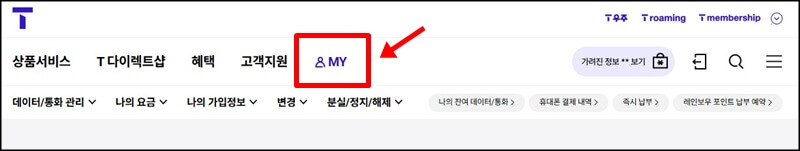 그럴 때는 티월드에서도 puk 코드를 조회하여 해제할 수 있습니다. 두 번째 puk 해제방법은 t월드에 접속하여 로그인 한 뒤 상단에 있는 MY로 접속하여 나의 가입정보로 들어갑니다.