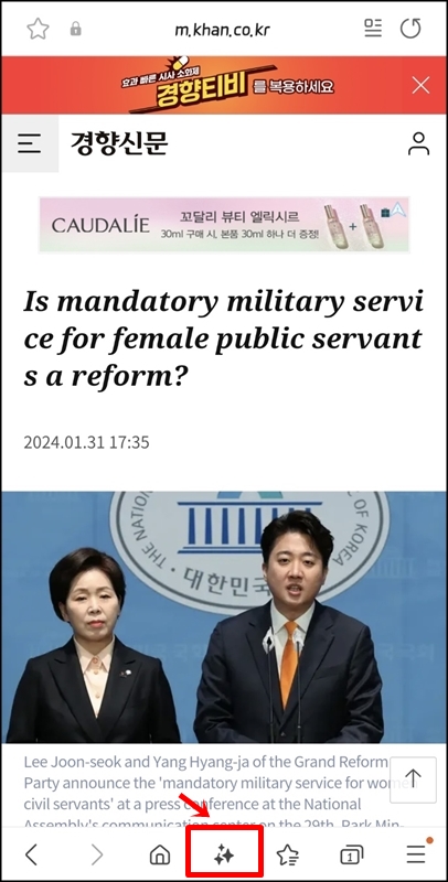 그리고 가끔 영어 기사나 영어 칼럼을 볼 때는 하단에 있는 반짝이는 아이콘을 클릭하면 번역 또는 요약을 해주기 때문에 별도의 번역사이트를 거치지 않고, 편리하게 이용할 수 있습니다.