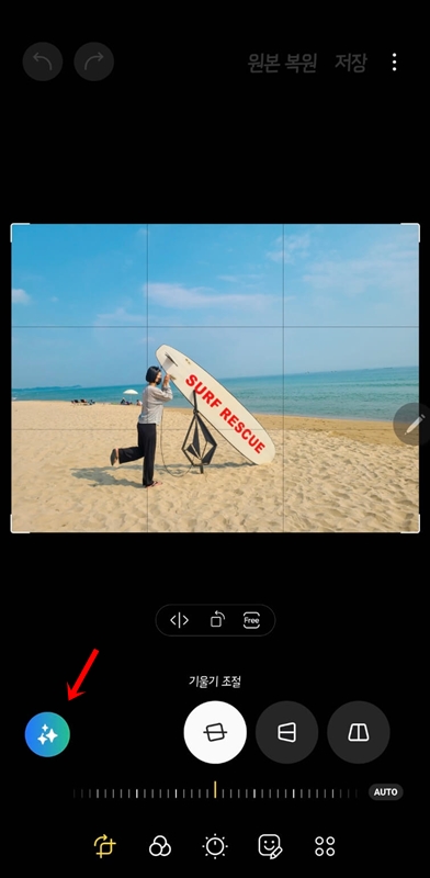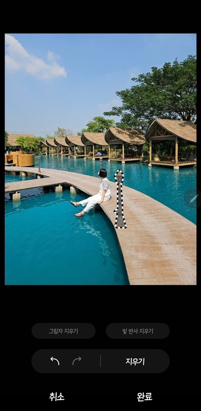 또, 사진 촬영후 해당 부분만을 터치하여 이동하거나 크기를 키우는 편집도 할 수 있습니다. 편집하고자 하는 사진에서 편집(연필모양)으로 들어가서 왼쪽 하단에 있는 반짝이는 아이콘을 클릭한뒤 이동하거나 삭제할 대상을 선택하거나 테두리를 따라 그리면 이동한 대상의 빈자리를 자동으로 채워줍니다.