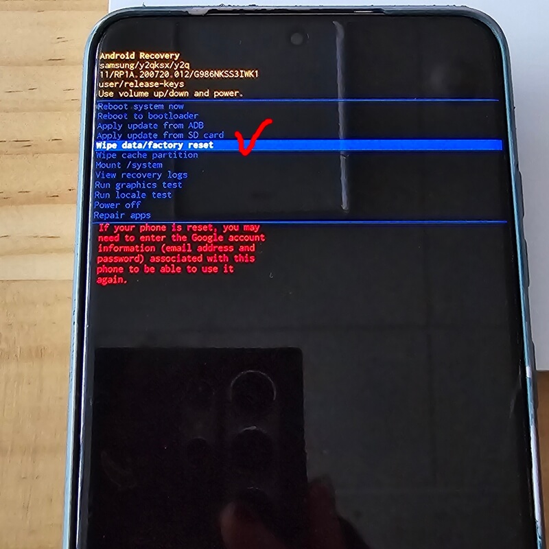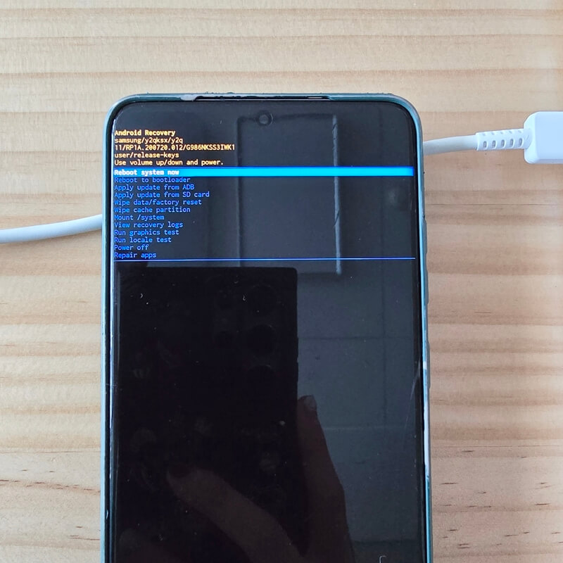 저는 갤럭시 S20+ 모델을 초기화하려고 했으나 상단볼륨+전원 버튼이 먹히지 않았고, USB 케이블을 연결했을 때 공장초기화 메뉴에 진입할 수 있었습니다.