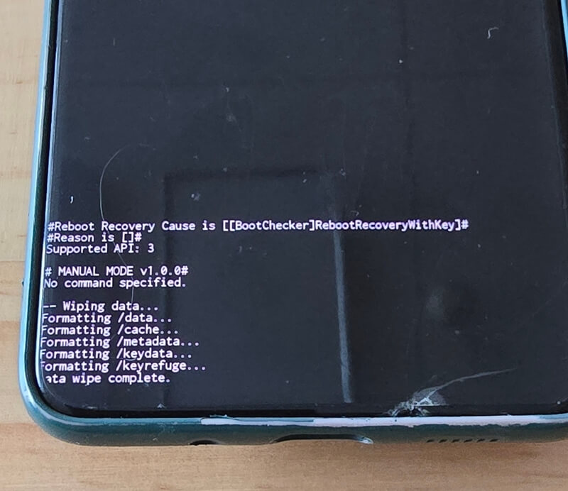 1. 핸드폰이 꺼진 상태에서 상단볼륨+전원버튼을 누르거나 핸드폰이 꺼진 상태에서 USB 케이블로 핸드폰과 컴퓨터를 연결한 후 상단볼륨+전원버튼을 동시에 꾹~ 눌러줍니다. (초기화메뉴로 진입할 때까지 계속 누르고 있어야 함)