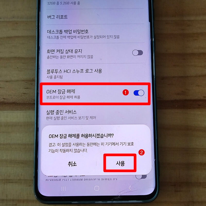 3. 개발자 모드를 활성하면 핸드폰 설정 맨 아래 개발자 옵션 메뉴가 생성되는데요~ 개발자 옵션 메뉴를 클릭하고 들어가서 OEM 잠금해제를 활성화해줍니다.