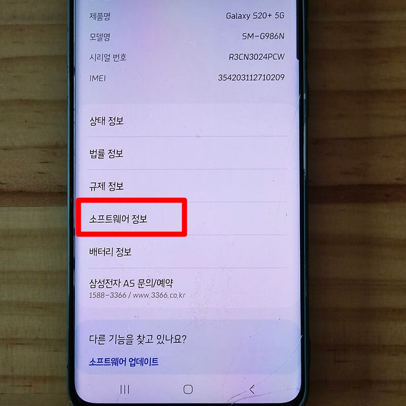 2. 이후 구글락 해제를 하기 위해서 스마트폰 개발자 모드를 활성화시켜줘야 하는데요~ 구글락 해제는 핸드폰 공장초기화 방법 후에 다른 사용자가 구글 계정으로 로그인 한 뒤 발생할 수 있는 잠금 현상을 방지하기 위해 설정하는 과정으로 핸드폰 설정 > 휴대전화 정보 > 소프트웨어 정보 순으로 접속한 뒤