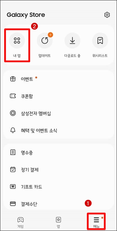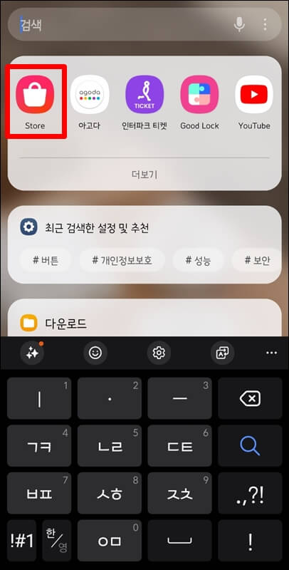 보통 핸드폰을 구매하고 폰트 변경을 할 때는 설정으로 들어가서 변경하지만 내가 그동안 구매했던 글꼴은 먼저 갤럭시 스토어로 들어가서 다시 다운로드를 해줘야 합니다. 구글 플레이가 아닌 갤럭시 스토어로 들어가야 해요.