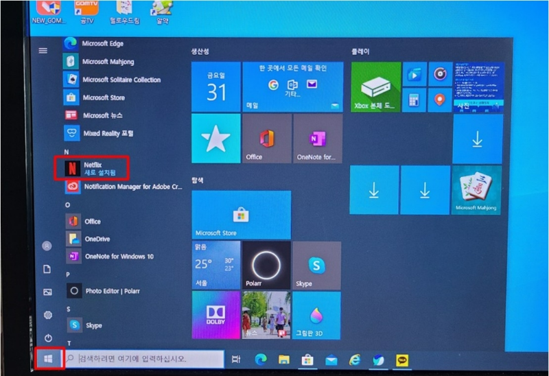 넷플릭스 PC 버전을 다운로드하고 나면 바탕화면에 넷플 아이콘이 생기지 않기 때문에 작업표시줄에 고정을 해놓으면 좀 더 편리하게 이용할 수 있습니다.