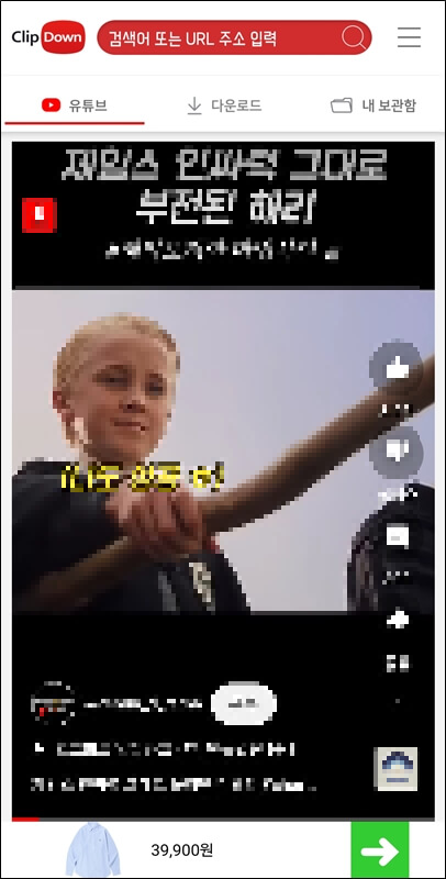 유튜브 음원추출 클립다운을 실행하면 유튜브와 비슷한 형식의 인터페이스를 볼 수 있는데요~ 상단의 빨간색의 검색창에 검색어 또는 URL 주소를 입력합니다.