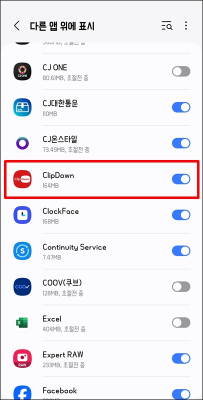하지만 유튜브 음원추출 클립다운은 플레이스토어가 아닌 원스토어 앱에서 다운로드 해야하는데요~ 원스토어 앱에서 클립다운을 검색한 후 설치를 진행하고 파일에 액세스를 허용한 뒤 다른 앱 위에 표시 또한 해당 앱을 활성화시켜줍니다.