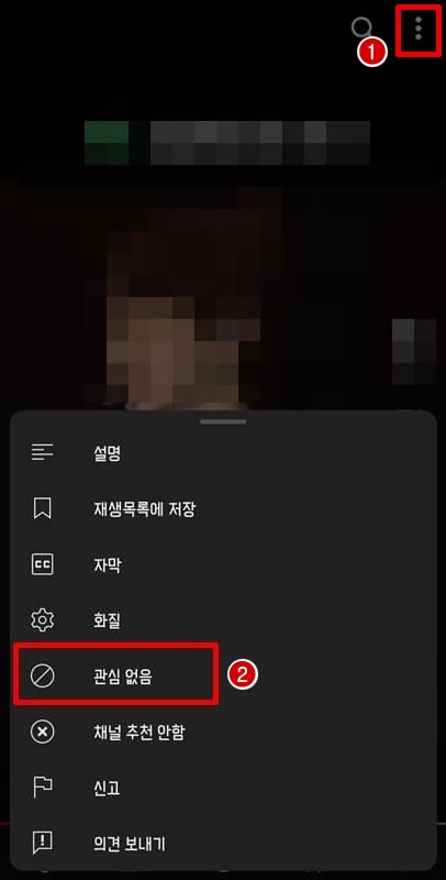 그런데 쇼츠 채널을 아예 차단하고 싶다면 해당 채널의 영상을 하나 띄운 후 오른쪽 위에있는 점 3개를 누르고 채널 추천 안 함을 클릭하면 유튜브 쇼츠 채널 차단이 가능합니다.