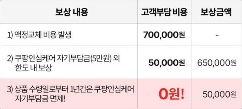쿠팡 안심케어를 구매할 경우에는 최대 2년 동안 파손에 대해서 보장되고, 총 보상금액 한도 내에 횟수 무제한 손상에 대한 보장이 제공됩니다.