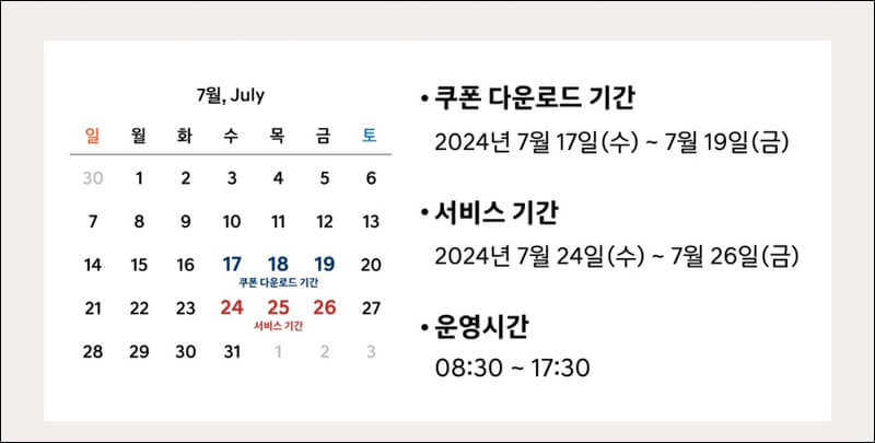 현대자동차는 그동안 명절 연휴에 항상 무상점검 서비스를 진행해왔었는데요~ 이번에는 본격적인 여름휴가철을 앞두고 진행되는 여름 특별무상점검 서비스인 만큼 7월 24일(수)부터 26일(금)까지 3일간 무상점검 서비스를 진행합니다.