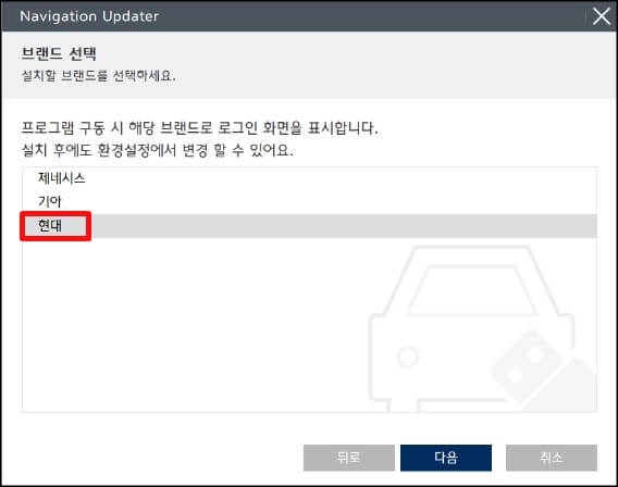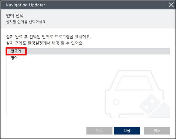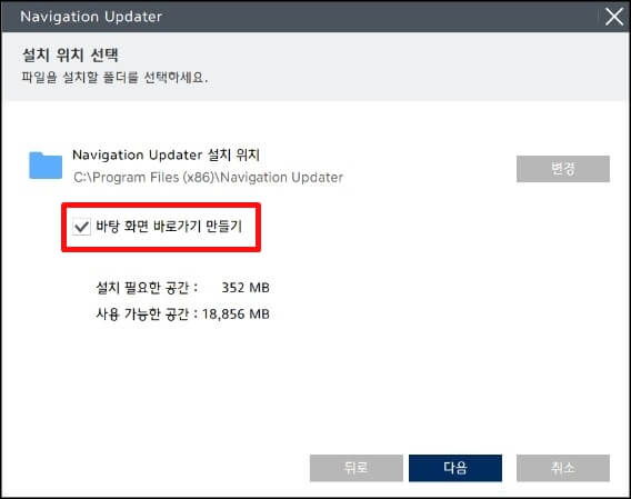 4. 설치할 위치를 선택하고 다음 버튼을 누르면 내비게이션 업데이트 설치 프로그램이 설치되고 설치가 완료될 때까지 기다려 줍니다.