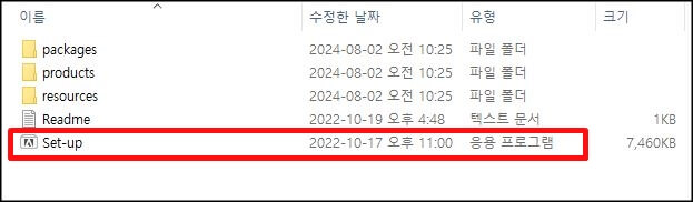 4. 압축이 풀린 어도비 포토샵 2023 파일을 실행한 뒤 맨 아래 파일의 Set-up 파일을 실행하여 본격적으로 어도비 포토샵 2023 무료다운 설치를 진행합니다.