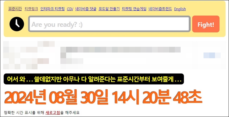 보통 콘서트 티켓팅을 할 때는 예매시간에 빠르게 접속하는 것이 무엇보다 중요합니다. 하지만 많은 사람들이 핸드폰 시간과 컴퓨터에서 제공하는 시간 그리고 각 서버에서 제공하는 서버시간이 똑같다고 생각하는데 이는 전혀 잘못된 생각입니다. 그렇기 때문에 티켓팅 고수들은 콘서트 티켓 예매가 시작되면 예매처의 서버시간을 측정해 주는 사이트를 이용하곤 합니다.